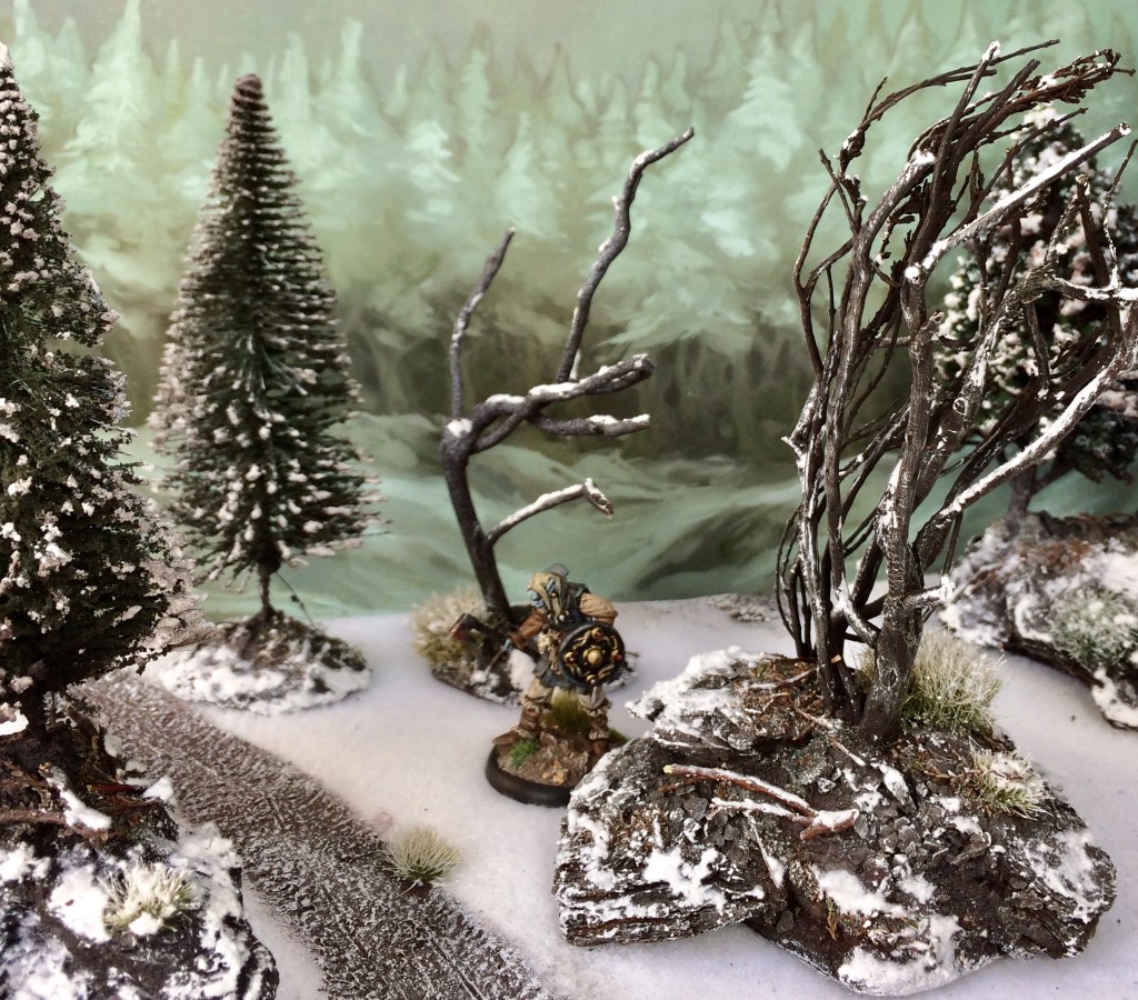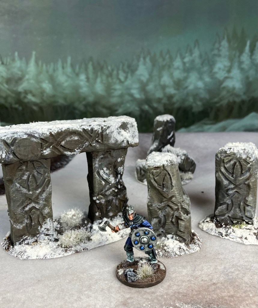 My friend Mike W had kindly 3d printed me a stone circle during lockdown, but I’d never got around to painting it. I already have a stone circle for my Celtic games so I thought it’d be fun to have one for the snowy setting as well.