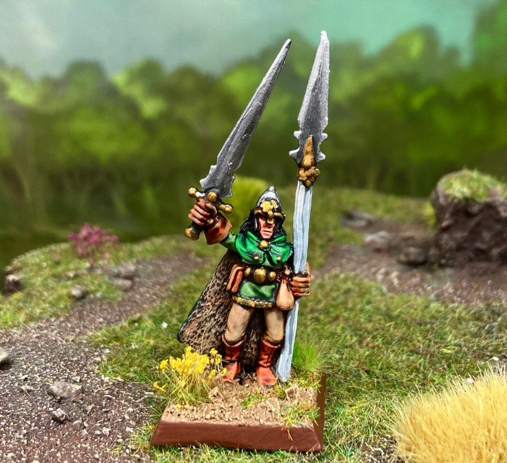 The Elven trio – Marauder Miniatures 1990s classics with a lick of new paint. The background is, as ever, one of the fab downloads available from Jon Hodgson Maps