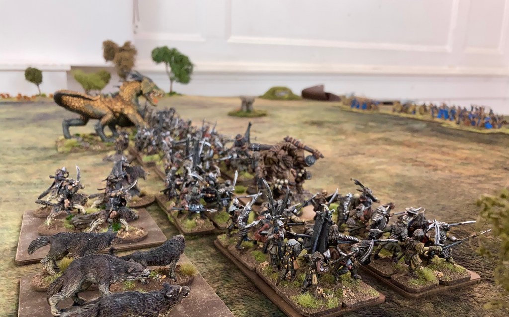 The not-too-shabby Orc host assembles with Wargs to the rear right flank