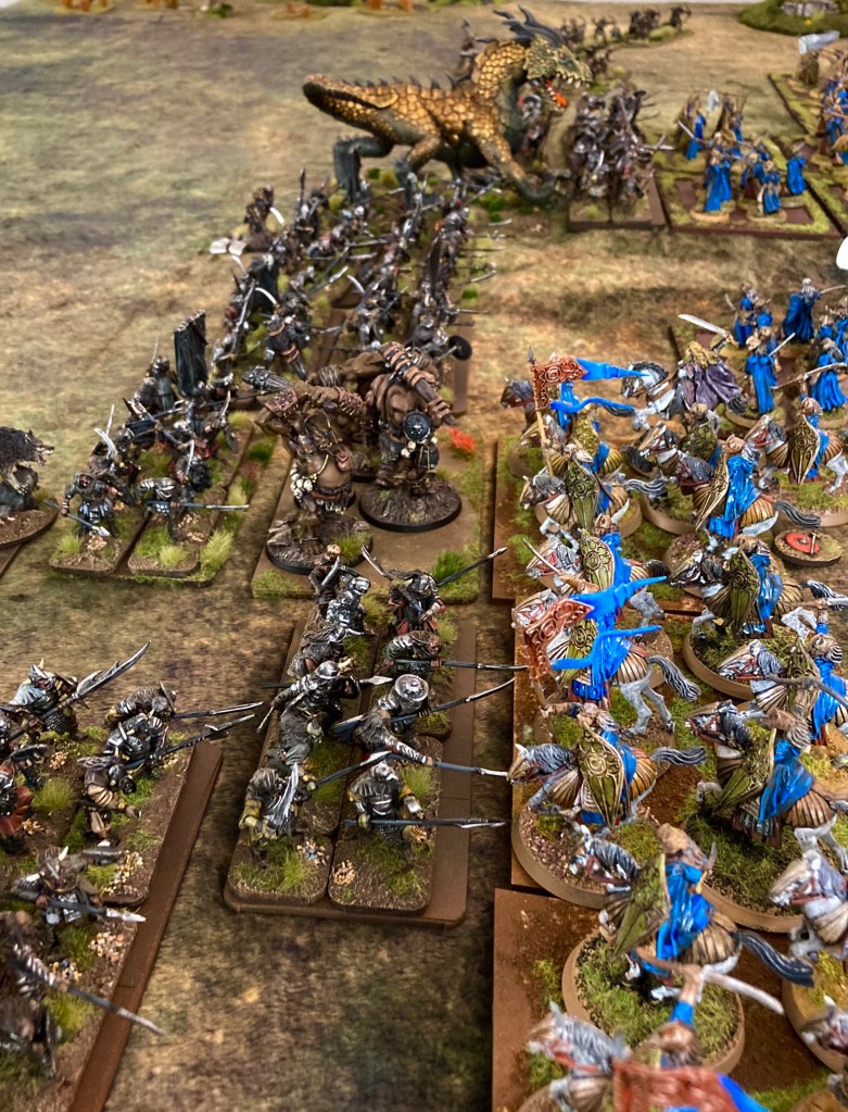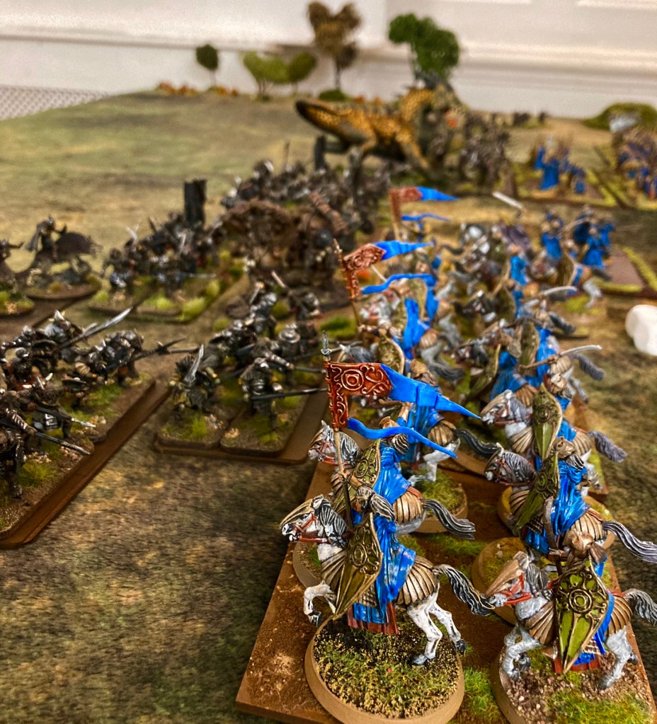 Turn 2: the full glory of the Elven heavy cavalry crashes into the Orcs. Ouch! Paul’s collection is entirely GW miniatures