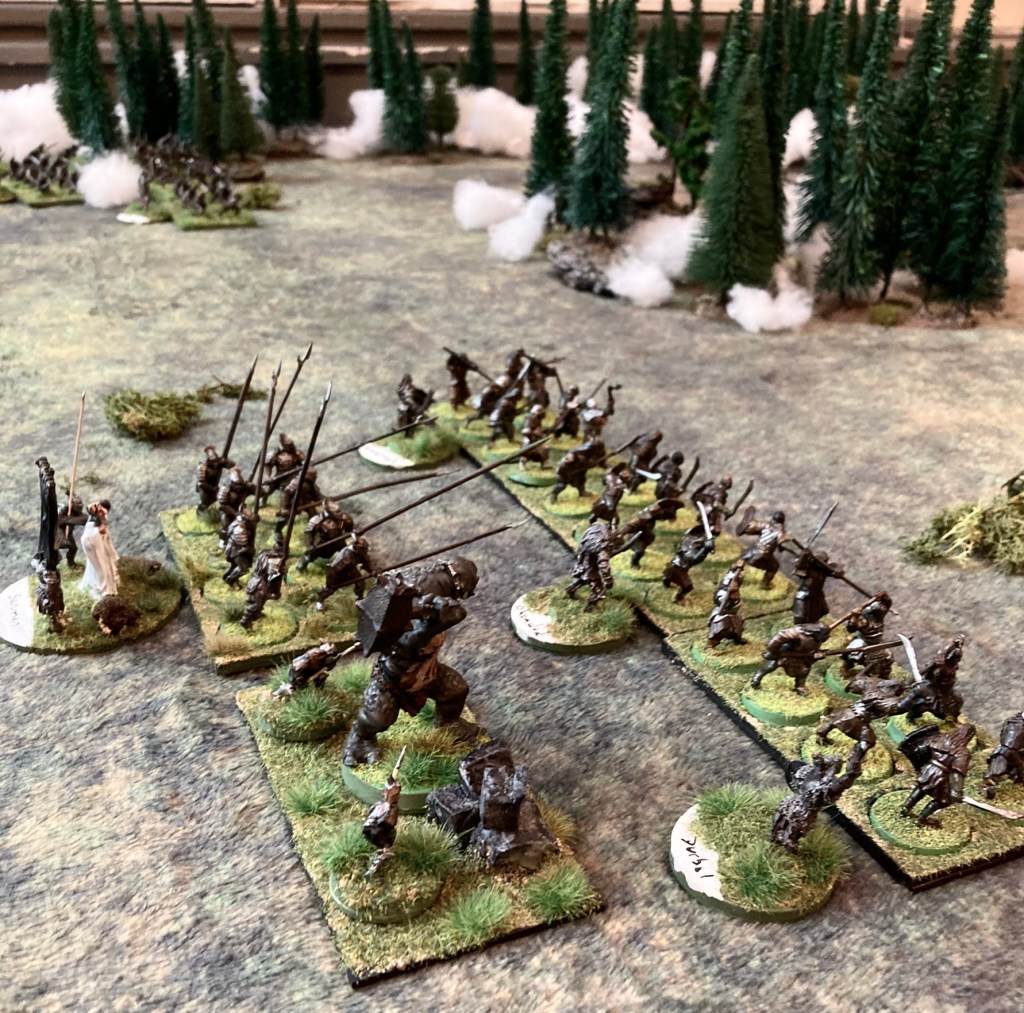 I’ve not gamed Middle-earth for a few months, so it was nice to be able to get a game in with Pete at the club last night. Pete has been reorganising his substantial collection of GW minis into armies for my Midgard Heroic Battles rules (which are due for publication by Reisswitz Press in the future – no date yet but watch this space for updates).