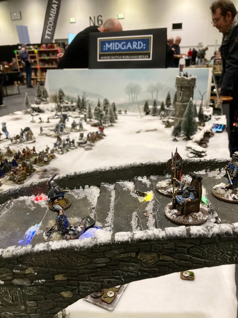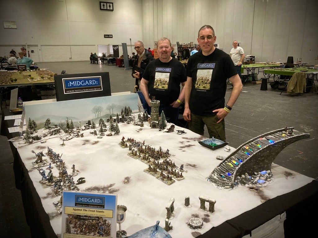 I was accompanied by two stalwart souls – Pete J and Andy Mac – long term gaming companions who have been separately involved in the Midgard Heroic Battles play testing process. This was fortunate, as I’d had the bright idea of running not just one but two games of Midgard at the show!