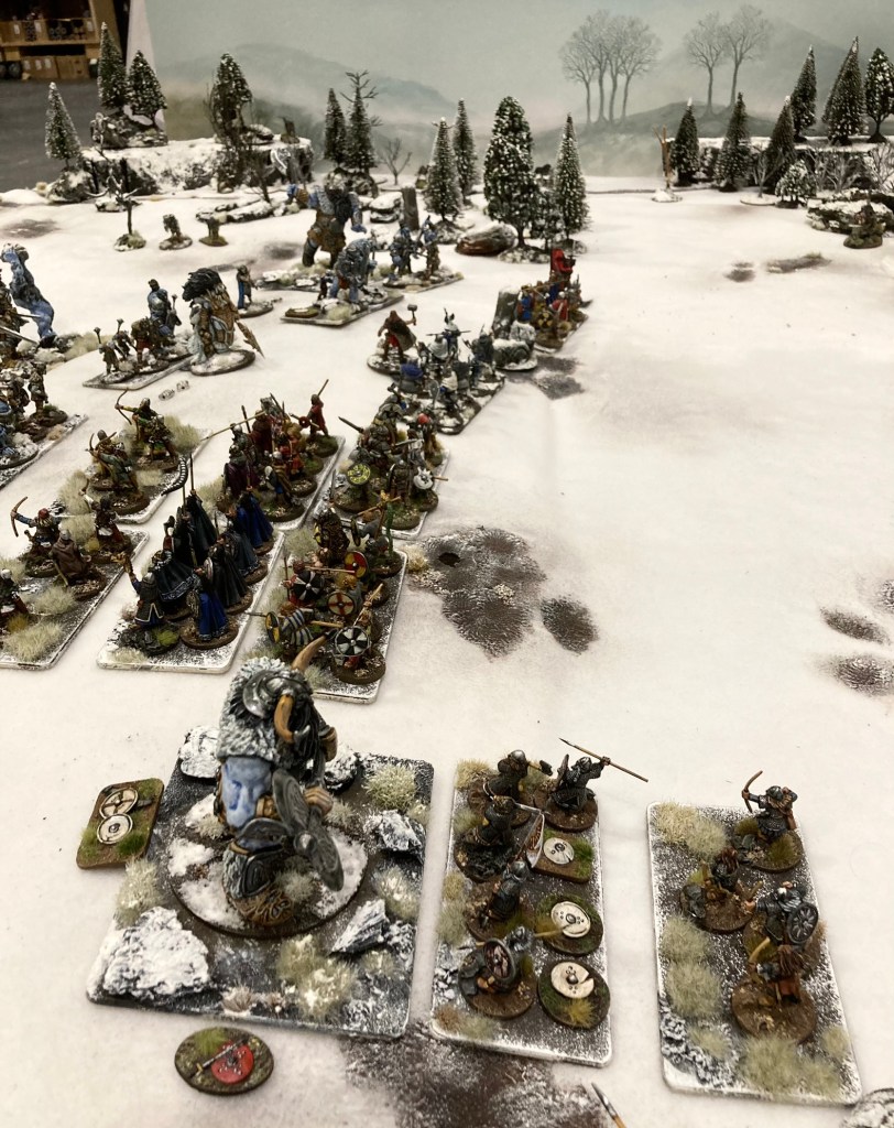 Opposing him were, of course, Heimdall, Freya and Thor with a diverse bunch of Asgardian defenders, including Norsemen, shield maidens, dwarfs and alfar. If you’re interested in the figures and terrain, there is a full blog article here with details of what’s what.