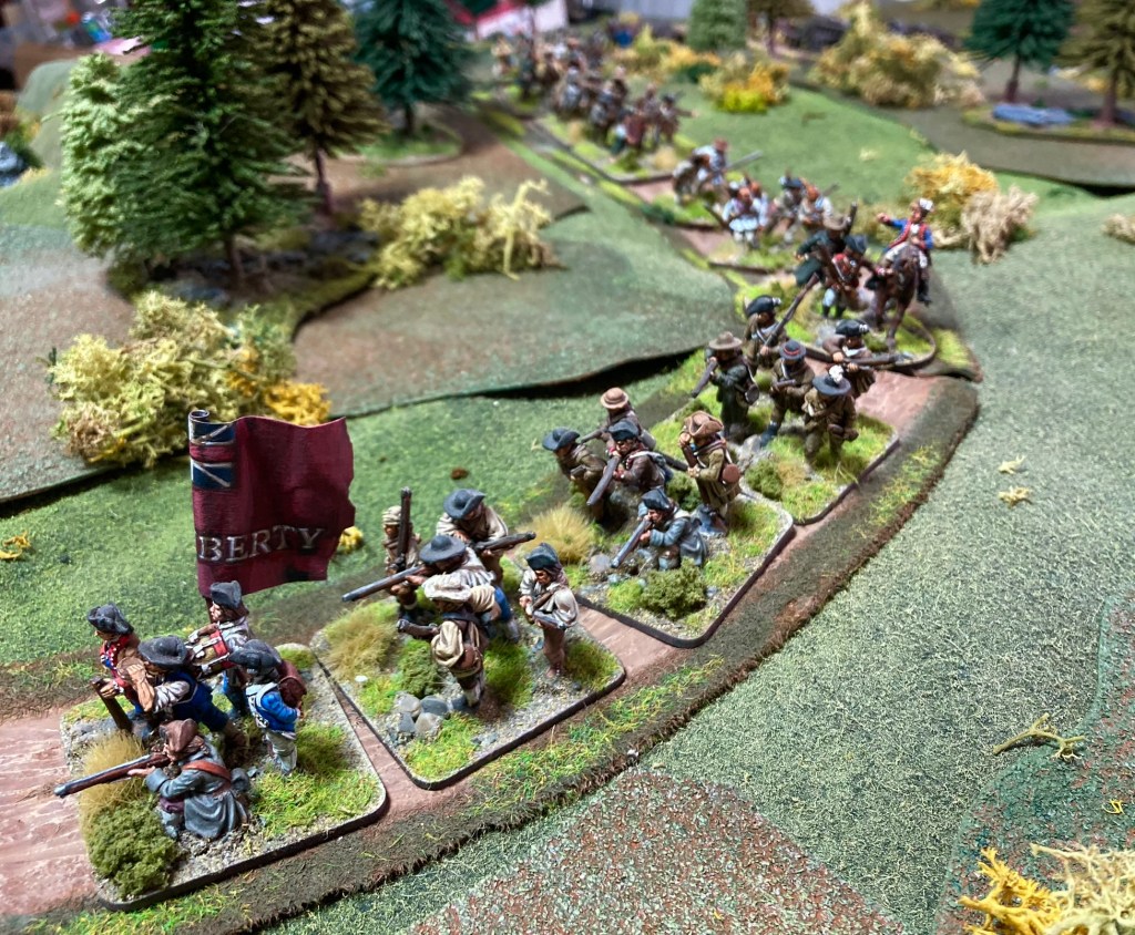 Feeling bolstered by a couple of good command rolls and feeling the need to break the deadlock, the Tryon Militia attempted to drive off their ambushers with a charge.