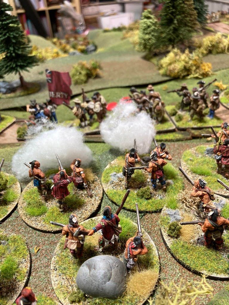 The scenario was a refight of the Battle of Oriskany 1777 – especially chosen for me as Steve knows I prefer irregular warfare and Native Americans! Oriskany (popularly known as ‘the bloodiest battle of the Revolutionary War’) was a British-led ambush on a Rebel column which was coming to the relief of the besieged Fort Stanwix.
