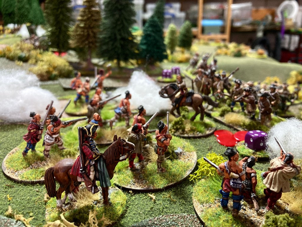 Gaming has included some Black Powder (Steve also wrote the Rebellion AWI supplement for Warlord Games) but has mostly focused on developing his own Bloodybacks period-specific rules, which are now up to version 9.0. The latest variant includes card activation for leaders and now uses D12s for most rolls – interesting stuff!