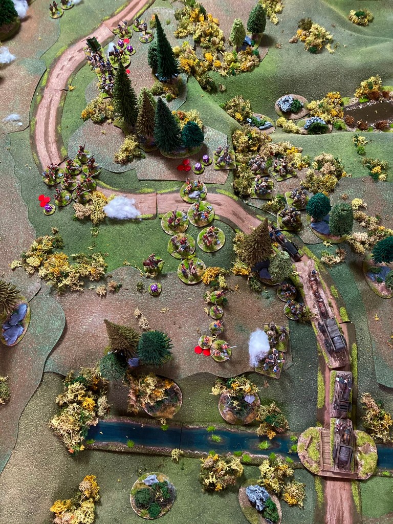 In the actual battle, this was so heavy that it halted all action, and we did the same in our game, only allowing some rallying.