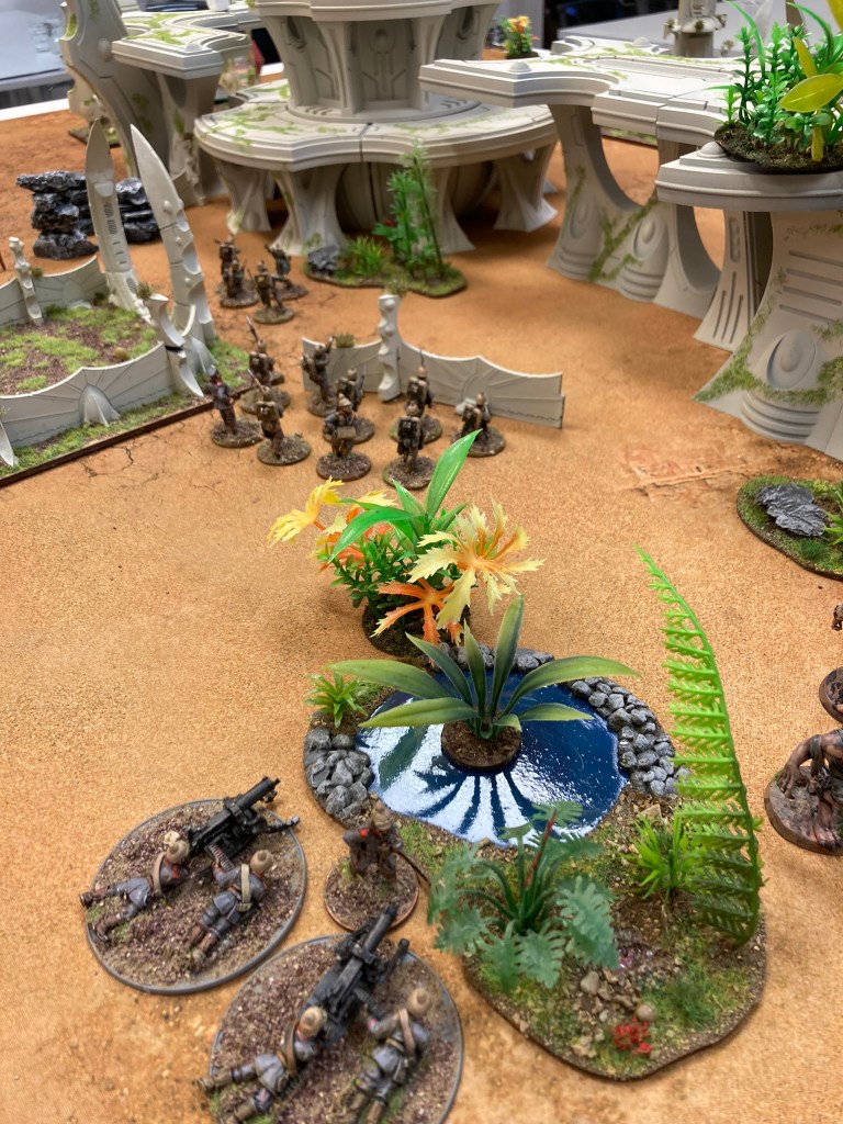 1. Fantastic looking game there. That Eldar spaceport is the stuff of grognard dreams.