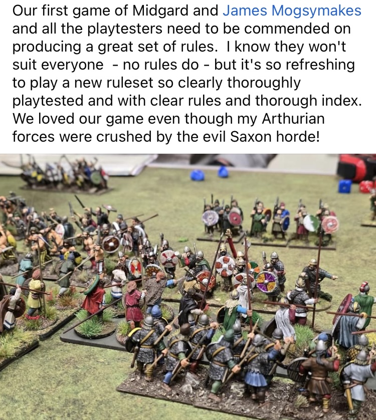 The Midgard Heroic Battles Official Facebook Group has been a hive of activity, with players posting their own Force lists to the site. I have posted four additional ‘official’ lists as well, covering the Wars of the Roses and the Ancient British and Early Imperial Roman Forces that we used in playtesting. These are available both on Facebook and on my Midgard Heroic Battles page for free download, as is a MS Word Excel Force Creator document.