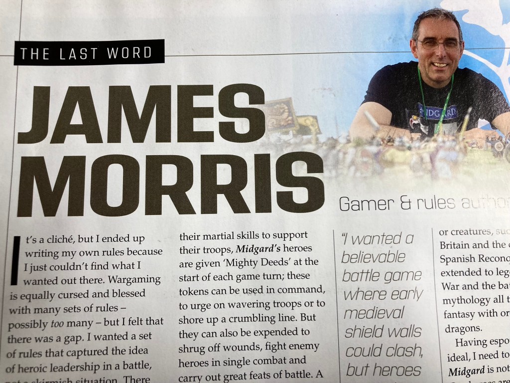Magazine coverage of Midgard has also started, with articles about gaming Homer’s Iliad with Midgard in Wargames Illustrated 444 and a one-page discussion of what inspired me to write the rules in the back of Miniature Wargames 500.
