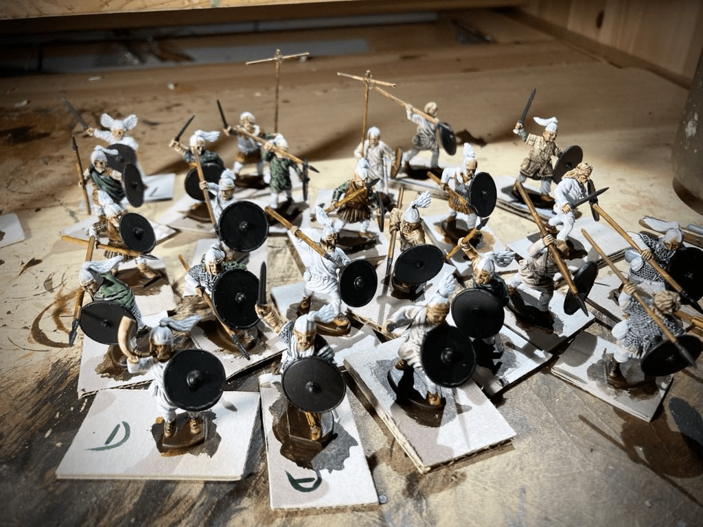 Next weekend, Sunday 18th May, is our big local show, the fab Partizan at Newark Showground, where we’ll be putting on the Battle of Mount Badon for Midgard Heroic Battles. I discovered last week that no-one in the group has Derfel’s Wolf Tails, so much sticking and painting has been taking place! And I’m quietly glad that I saved all the wolf tails from my Oathmark goblin sprues…