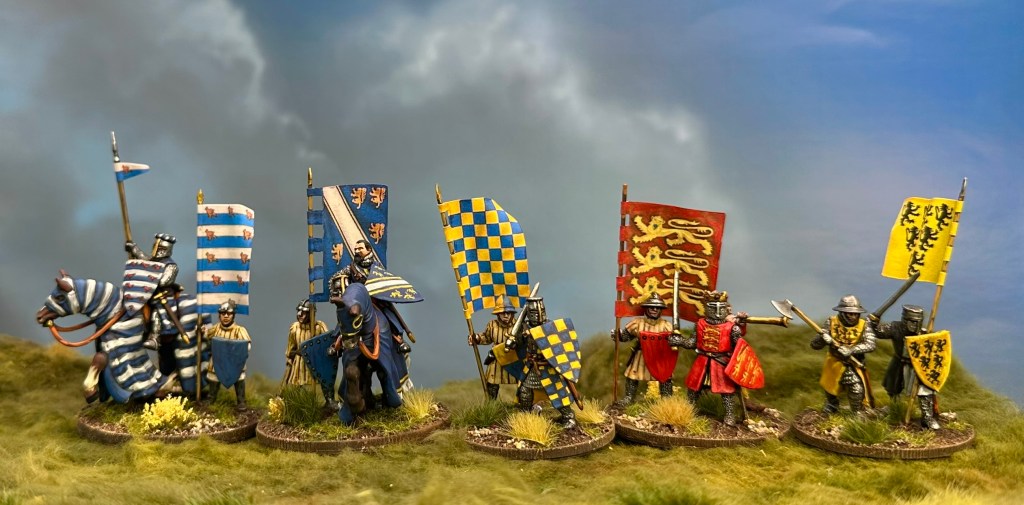 I’ve been busy painting and basing more commanders for one of the campaigns I’m currently play testing for Midgard Heroic Battles. Here we have Simon de Montfort and his sons, plus a number of royalist supporters as well.