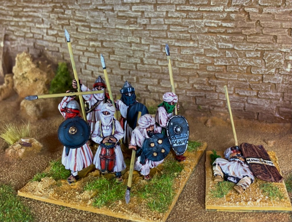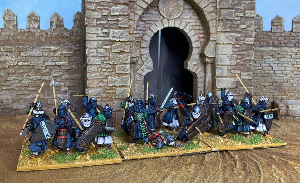 African or Andalusian spearmen formed the bulk of the Almoravid armies. Figures by Gripping Beast; the casualty is a converted Old Glory Tuareg.