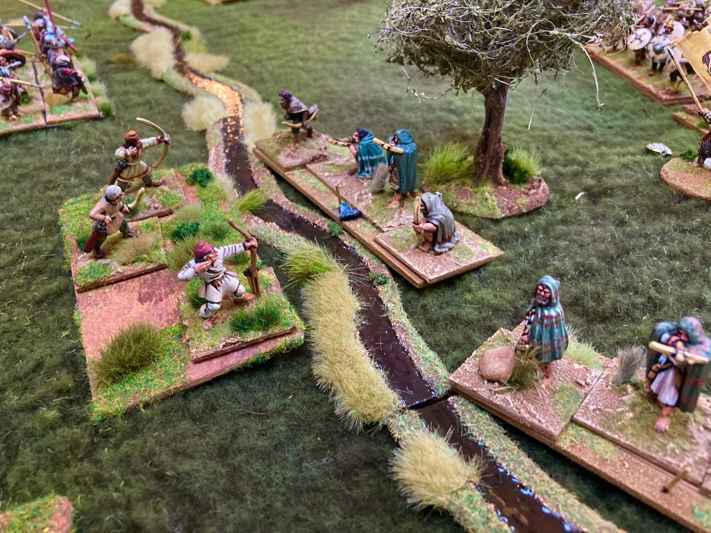 The more numerous Dal Riadan skirmishers caused problems to the Saxons up and down the line, in one case dropping arrows right in front of Aethelfrith’s own hearthguard.