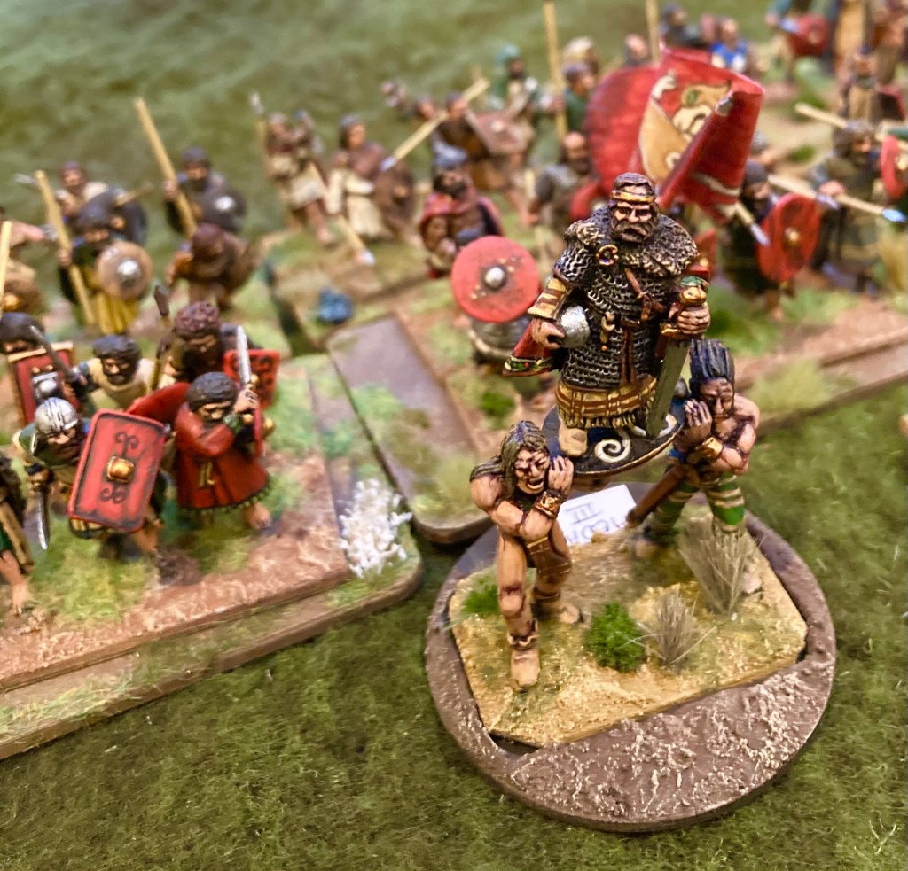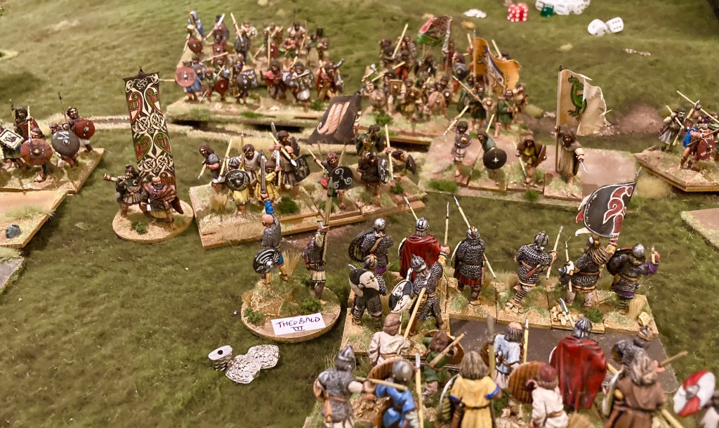 With the final turn of the game in sight and Bernician reputation teetering on defeat, Theobald, brother of Aethelfrith, charged in on the left wing and issued a challenge to Mael Umai of Ulster. Although they should have been evenly matched, the Ulsterman made short work of the Bernician in the style of Cuchulain himself!