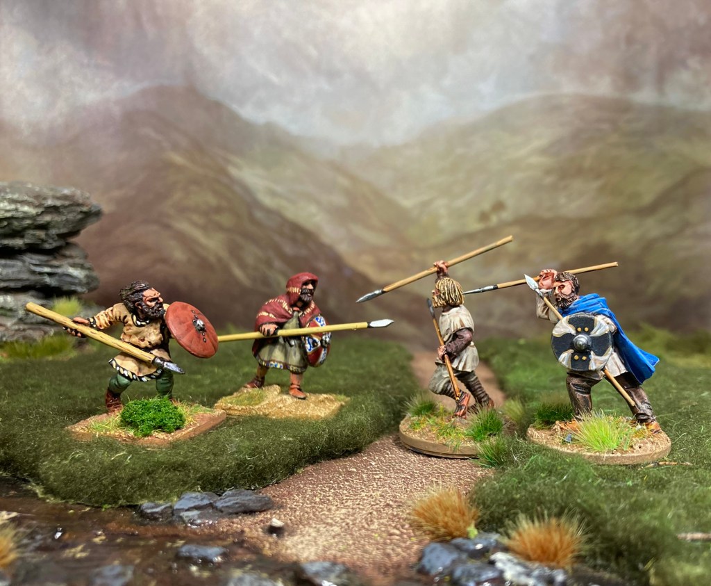 My recent Battle of Degsastan game got me thinking that I should refurbish my beloved 28mm Dark Age armies. These were originally mostly based up for Warhammer Ancient Battles, with each model being on a small square base. I’ve always liked vignettes, so my later armies featured command bases on 40, 50 or 60mm round bases, but I’d never done this for my Irish and Picts.