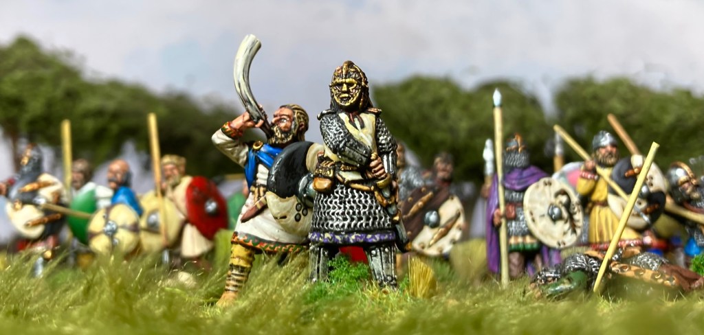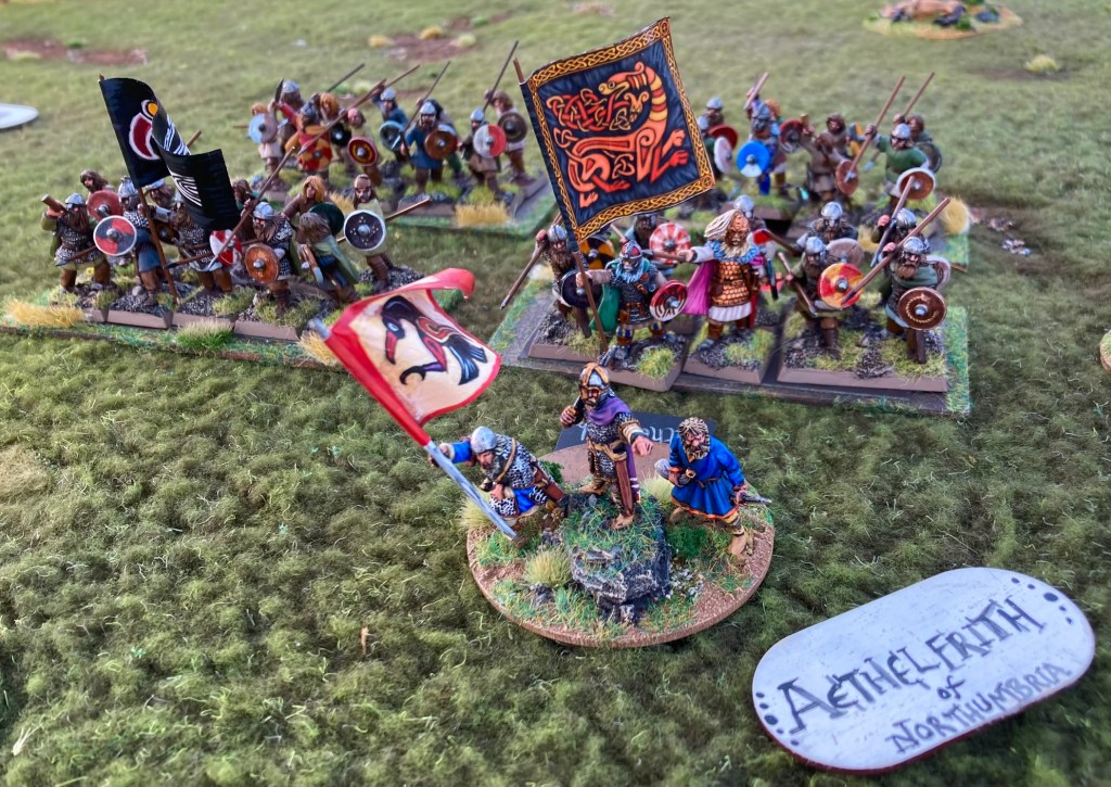 Aethelfrith of Northumbria and his warriors – 28mm miniatures by Gripping Beast, Black Tree and Footsore Miniatures