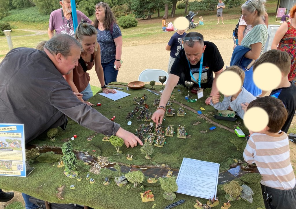 Within 15 minutes of the site opening, we were running our first game and were then busy until closing time. One game would finish with a group waiting to play the next one as soon as we had re-set and some families came back and played multiple battles! As well as interested visitors, we also had a number of experienced wargamers and their families dropping in which was wonderful to see.