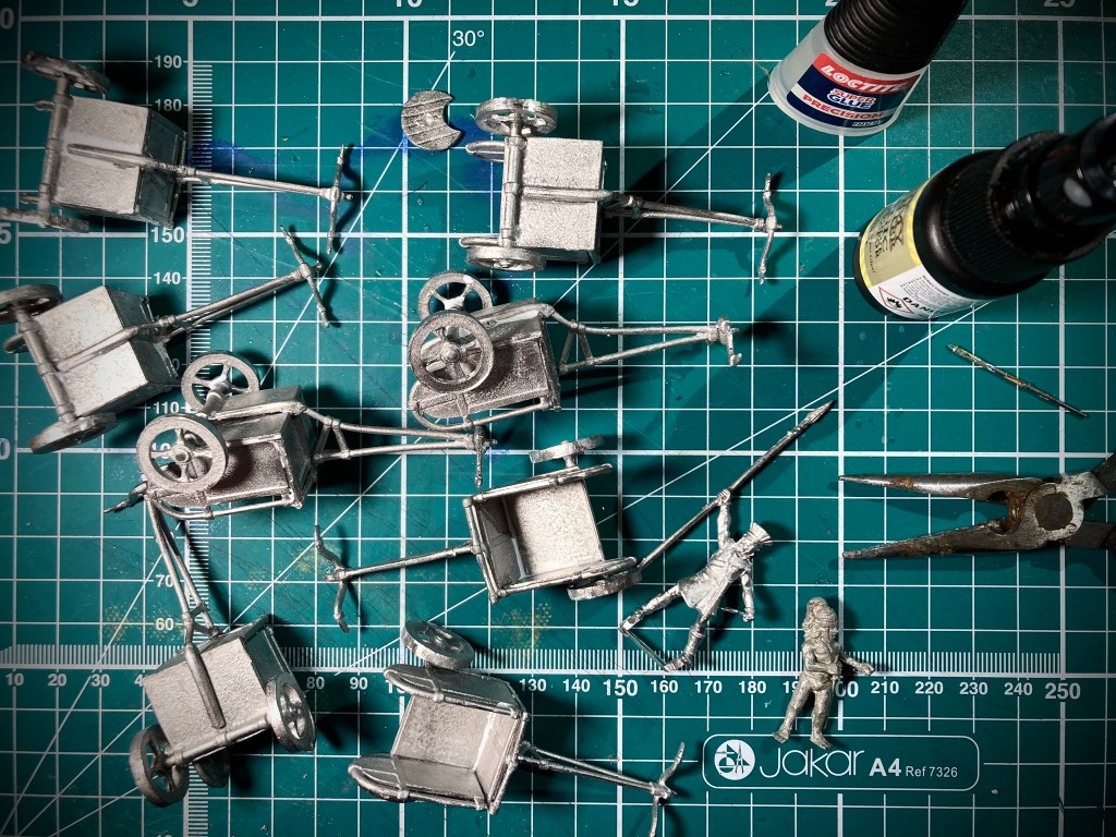 Fortunately, with eight models on the go, I could run an assembly line, cleaning and filing each piece as needed. Superglue accelerator was an absolute must!
