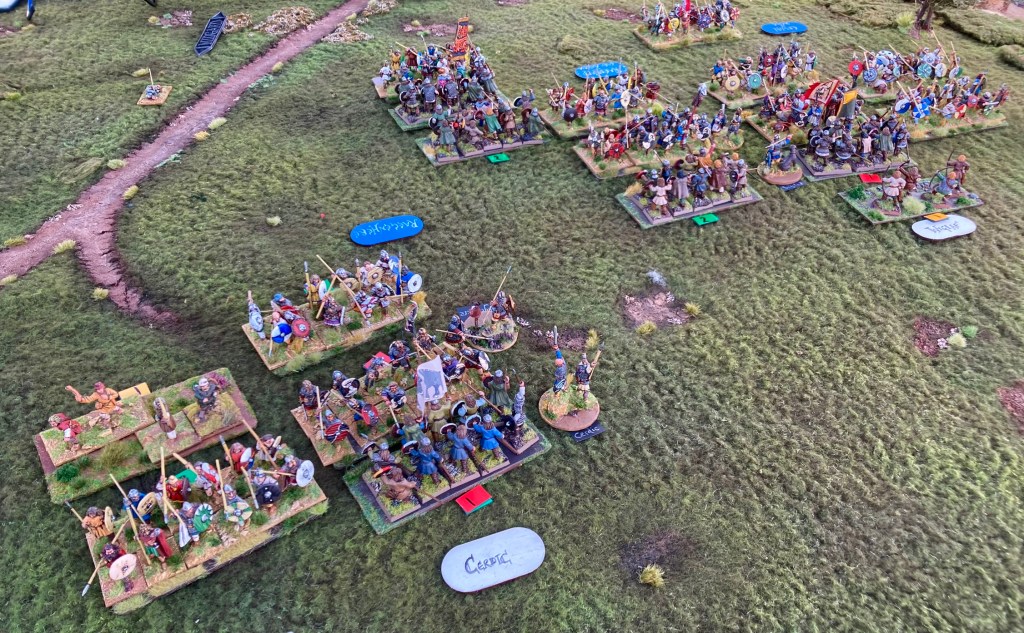 We (Morris & Chums/ Mogsymakes) were reprising our Battle of the River Idle 616 game from last year. Being the only battle that we know that Raedwald – King of East Anglia and the most likely candidate for being the occupant of Mound 1’s ship burial at Sutton Hoo – fought in, it was the obvious choice.