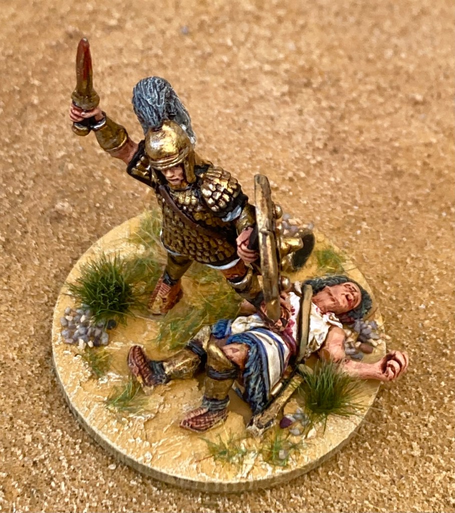 Lastly, I decided that Achilles needed a more mighty model than the Foundry one I already have painted (he’s nice but can’t really go toe-to-toe with the heroic Lucid Eye Amazons). I settled on the ‘Paris triumphant’ vignette from Redoubt Enterprises (now sold by Grubby Tanks).