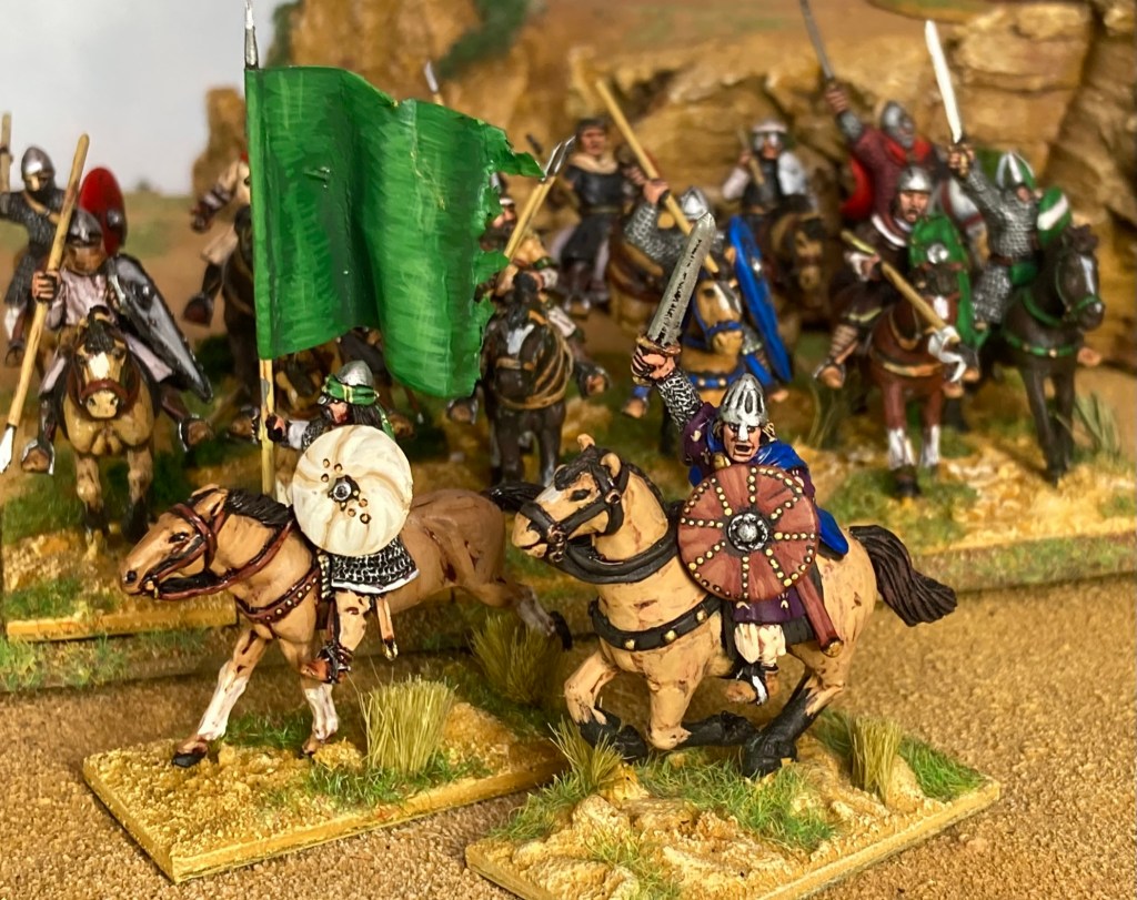 Above: caballeros from Perry Miniatures’ 28mm metal Crusades range. Below: massed caballeros from Gripping Beast and Perry Miniatures. The Gripping Beast ranges can be found here: https://www.grippingbeast.co.uk/El_Cid_The_Moors_The_Spanish–category–428.html and the Perry Miniatures First Crusade range here: https://www.perry-miniatures.com/product-category/metal-ranges/crusades/