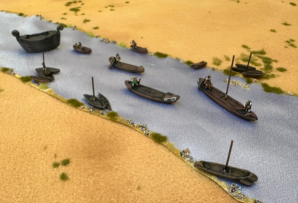 There’s no way I’d have been able to knock up 15-odd boats for a 28mm game in a few hours! Crew were added from spare Baccus and Rapier figures.