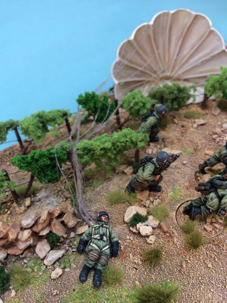 The Battle of Crete during WW2 is a fascinating subject to game: elite German troops taking part in the first ever all-airborne invasion, but at great disadvantage and suffering terrible losses. During this project, I was able to visit Crete, along with a couple of other members of the gaming team, and see first-hand some of the locations of this historic battle. Over the next year or so, we played numerous battles and skirmishes from the campaign, mostly using the Chain of Command rules but also Bolt Action and I Ain’t Been Shot Mum.