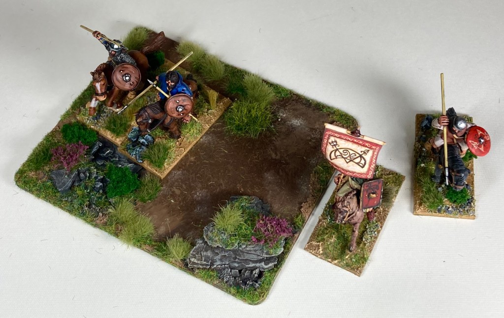 My many years playing Warhammer Ancient Battles convinced me of the merits of magnetic basing – being able to pull a full unit out of a steel paper-lined Really Useful Box, rather than trying to arrange every single figure on a movement tray for each game – and I have honed this system recently with armies for Dragon Rampant, Never Mind The Billhooks and my own Midgard Heroic Battles. Note that none of these systems requires you to do this! It’s just my way of getting the best of both worlds – creating a unit base that enhances the look of the game and will also keep miniatures in place during transit.