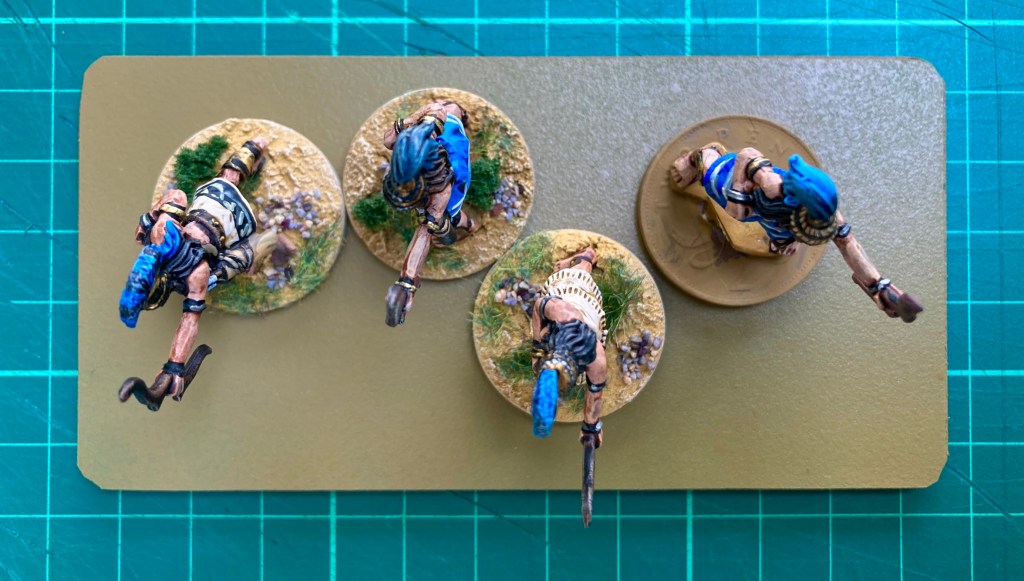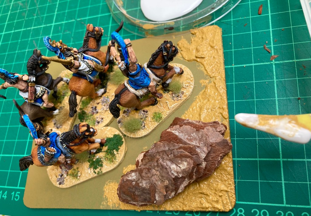 At this point, the minis go back on to the base briefly to check everything’s in order and to remind me NOT to get any flock or texture under the figure bases.