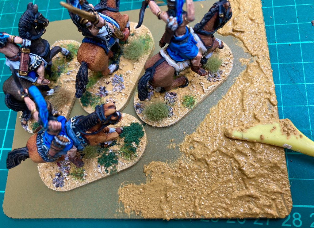 Once again, the principle is the same – keep the texture away from the figure bases. This is another reason why I don’t just texture the base with PVA and sand – the sand gets everywhere by itself!