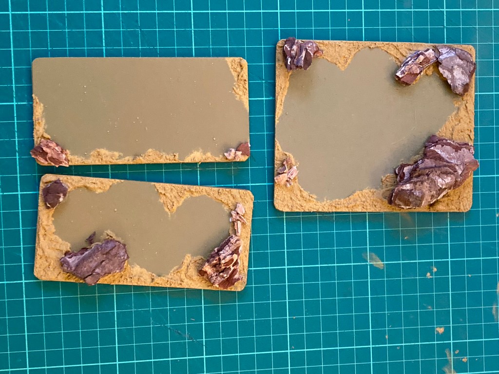 I also like to add rocks at this stage – these are either pine or cork bark chippings glued down with a good dollop of strong wood glue.