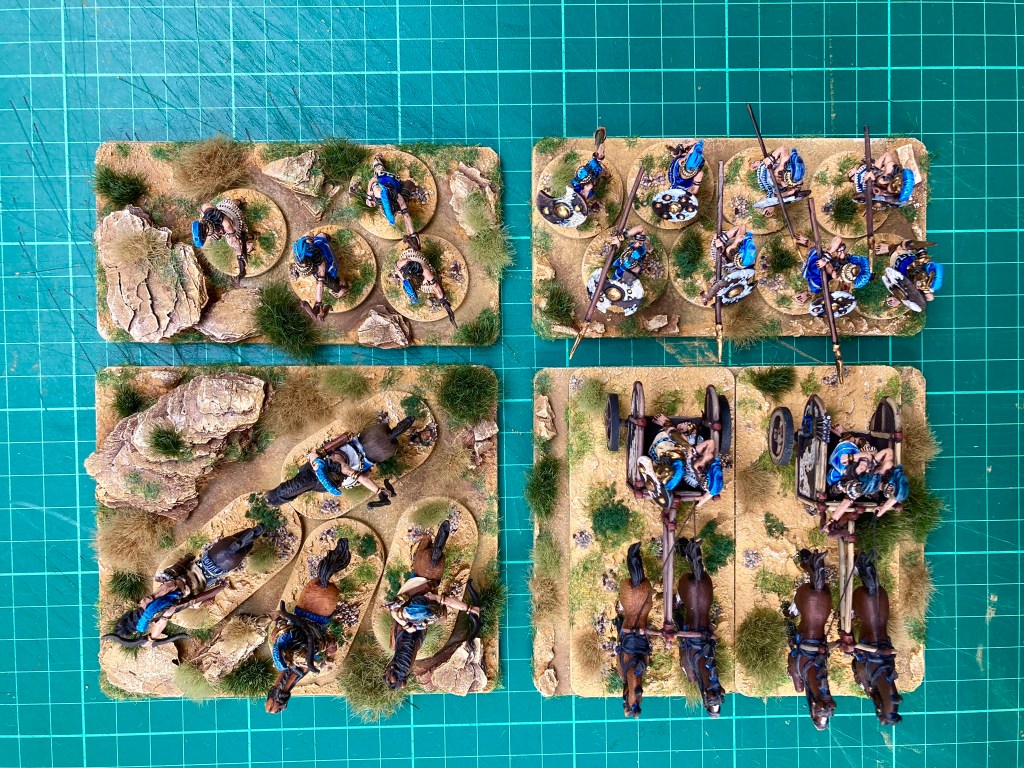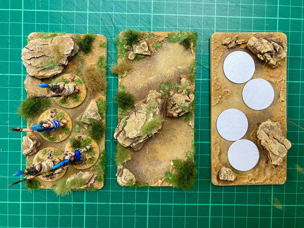 Everything starts with a 2mm MDF base: I have used plasticard and mounting board in the past, but currently I favour the Warbases ones with rounded corners. All my standard movement trays for Midgard are 12 cm wide which works for other games as well. Base depth isn’t a fixed size in Midgard, but I tend to use 6 cm deep for infantry and 10 cm for cavalry and chariots.