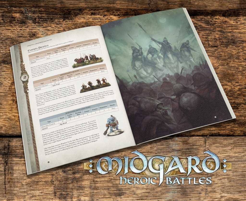 Midgard Heroic Battles is an all-in-one volume containing the rules (including flying creatures and sorcery), five scenarios, 12 sample Force lists and an appendix to allow you to create your own Heroes and Units.
