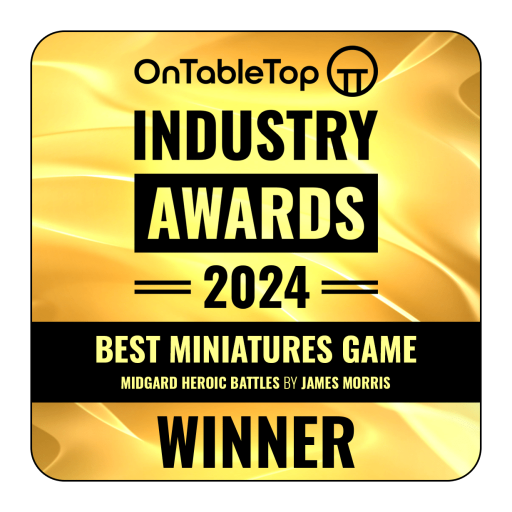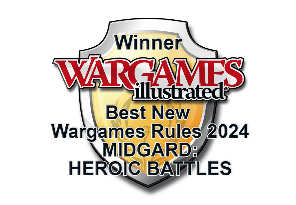 Midgard Heroic Battles won the Best New Wargames Rules Award 2024 as voted for by the readers of Wargames Illustrated Magazine, as well as Best Miniatures Rules 2024 at the On Table Top Industry Awards. Many thanks to Richard Clarke for editing and publishing, Jon Hodgson and Paul Bourne of Handiwork Games for stunning art and layout, Pete Jenkins for his photography and all the play testers for their contributions.