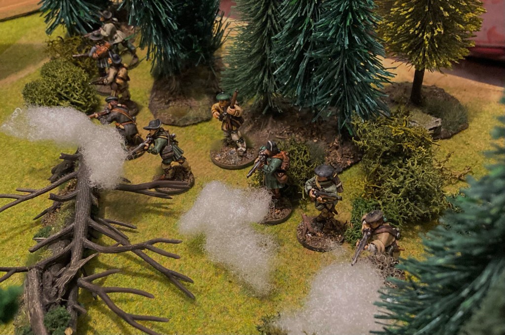 Stuck in the middle of yet another lockdown with no face-to-face gaming in sight, I took a snap decision to run a wargames campaign over Zoom using the popular Muskets & Tomahawks rules from Studio Tomahawk. I used an adapted version of Pete Brown’s logistical campaign rules from Wargames Illustrated 397 and acted as umpire, while the six players shared control of the French and British forces (‘shared control’ implies some level of organisation, which may be too generous, but we muddled through!)