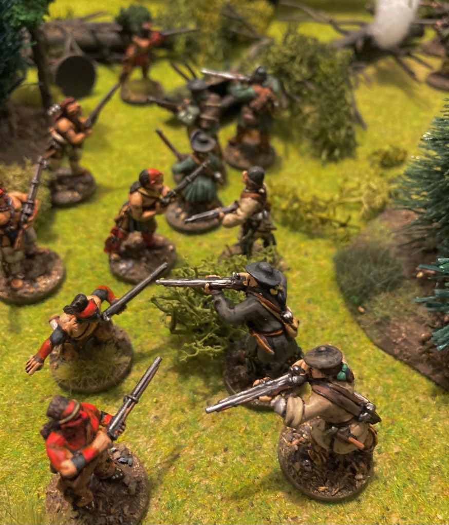 Below are some photos from the various games. 28mm figures are mostly from the wonderful Galloping Major range https://www.gallopingmajorwargames.co.uk/ with some militia and French Marines from Redoubt Miniatures https://www.redoubtenterprises.com/