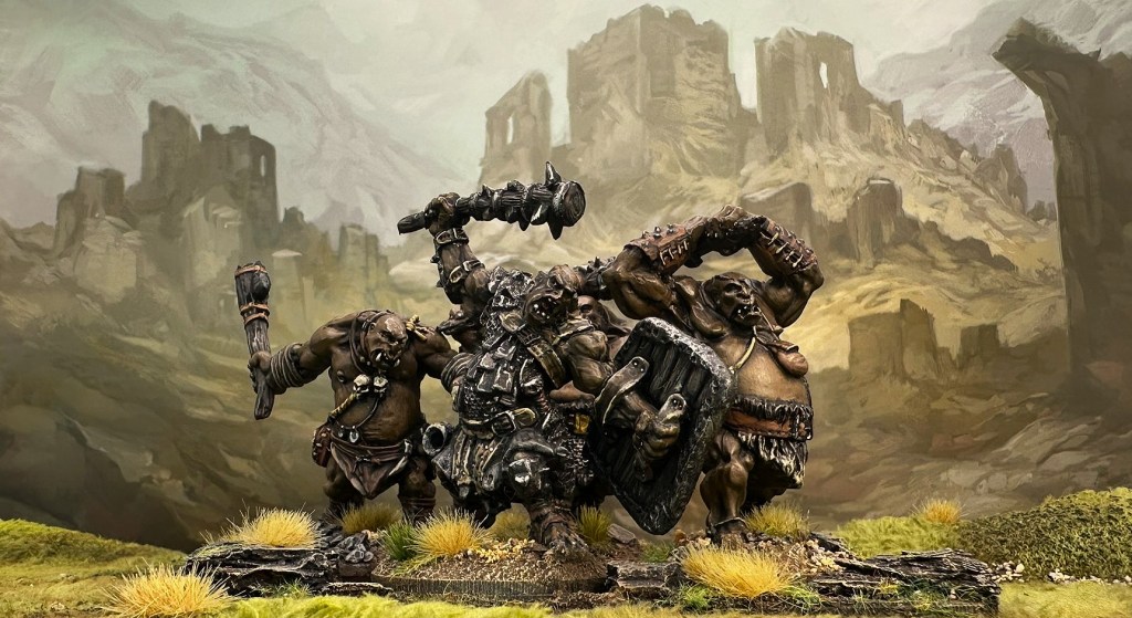 At this point, it’s worth mentioning the Trolls. This unit of delightful chaps are from Reaper Bones – all labelled as Ogres but very befitting for ME Trolls. The leader has scale armour, once again influenced by McBride MERP art.