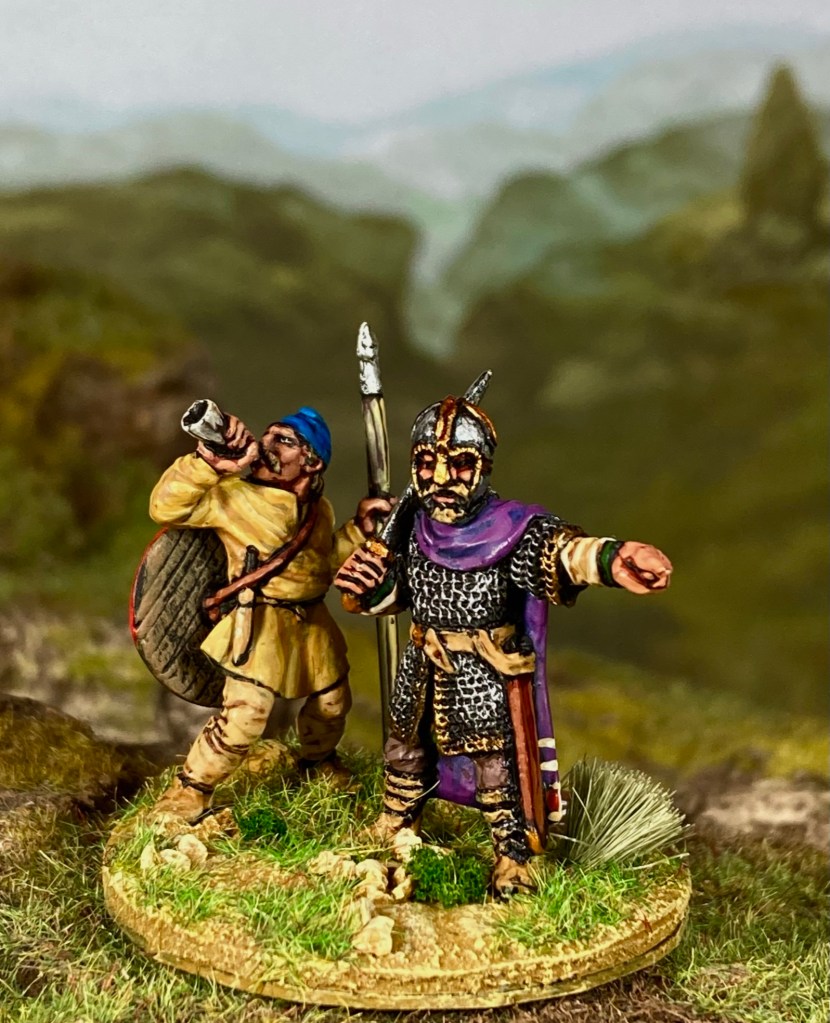 Another pair of Saxon leaders. This thegn and his hornblower are rather lovely, but out of production, figures sculpted by Roy Eastland for his Tanatus Miniatures range.