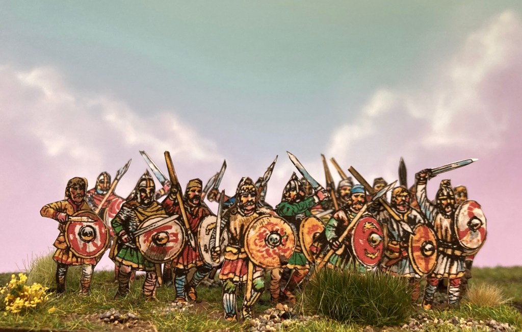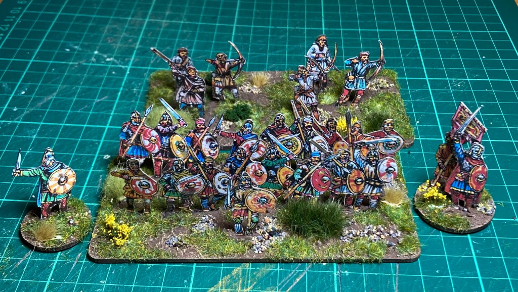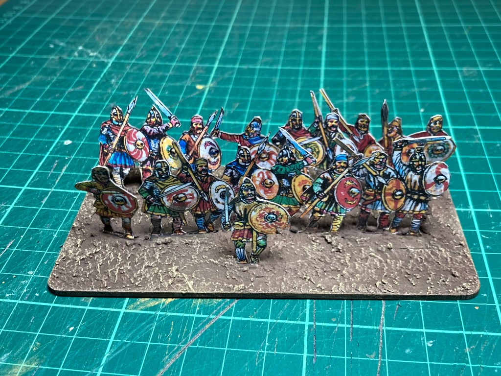 The finished units look great and are surprisingly three dimensional in appearance. They’re light to handle (definitely easier than lugging around boxes of 3D metal minis) but get some decent stability from the MDF bases. Most importantly of all, they were far quicker to assemble than the equivalent units in 28mm 3D miniatures, which means that I might be able to put together some armies as a side project.
