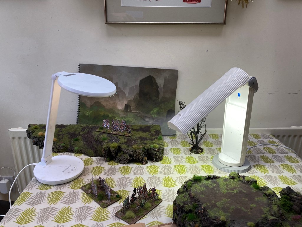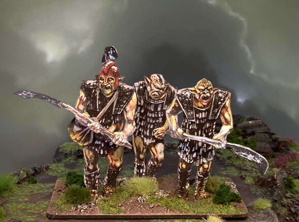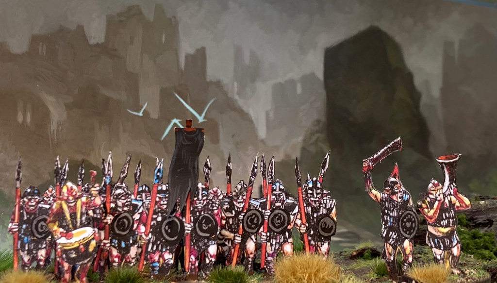 I’m absolutely spoiled for choice with the new backdrops, but settled on a very moody painting from the Skies book for the orc host. These really add some menace to the army!