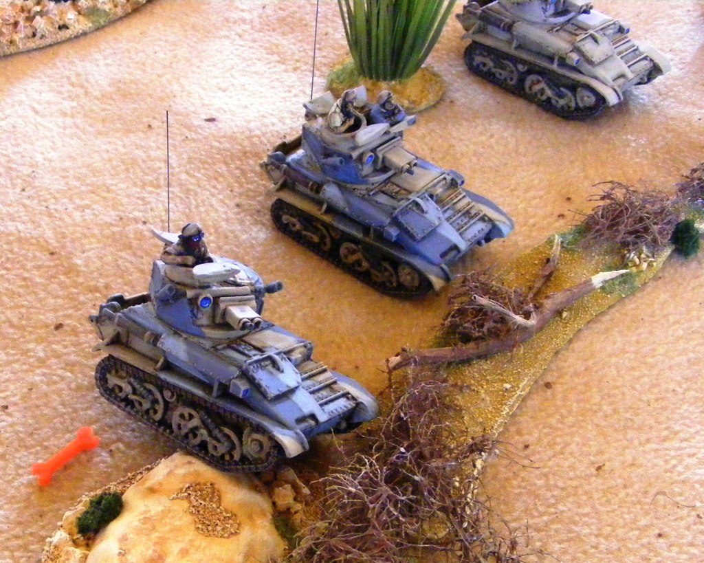 The position taken, the British forces awaited orders, but the Italians had taken the initiative back. Having shot down five British fighters over the battlefield, the Italians gained air superiority and proceeded to call up waves of bombers which pounded the British positions inside and outside the fort. The inexperienced 1st Essex suffered particularly badly and proceeded to retreat in some disorder – when Brigadier Slim, commanding, drove down to halt them in his Bren carrier, he was informed that not only had the Italians retaken the fort, that the Brig was dead as well! Despite the Brig disabusing them of this notion, morale was now dropping and casualties rising with no sign that the second Italian fort at Metemma could be taken. The truck carrying all the tank spares was destroyed by a direct hit, and Slim reluctantly ordered a retreat from the fort.