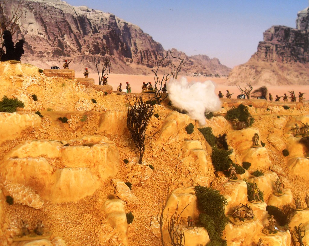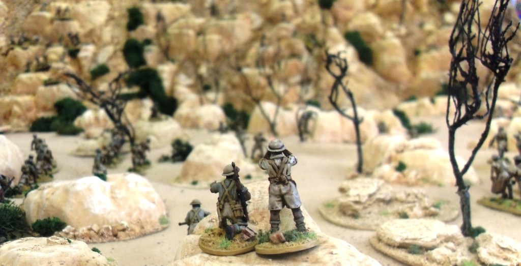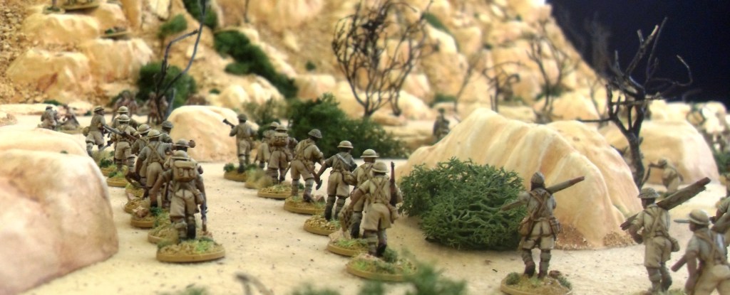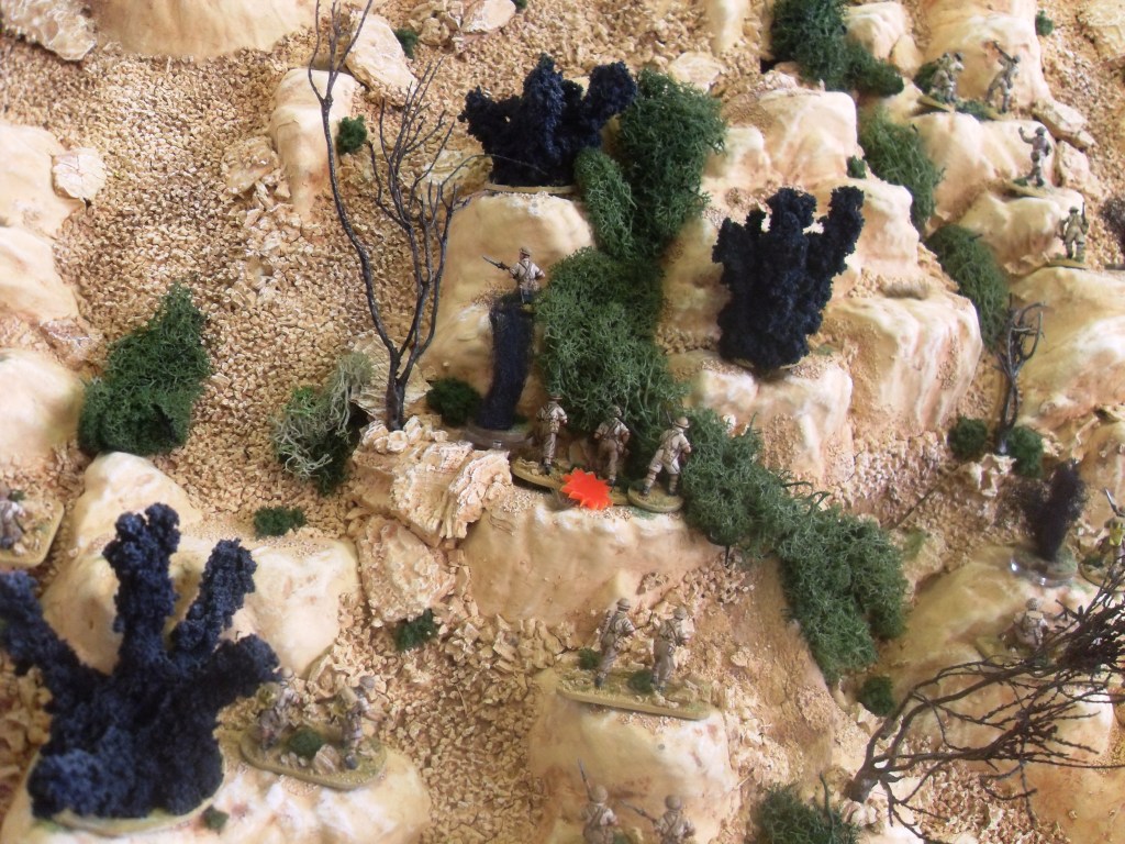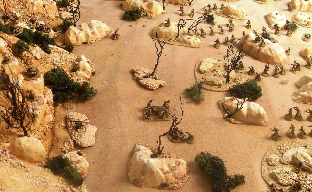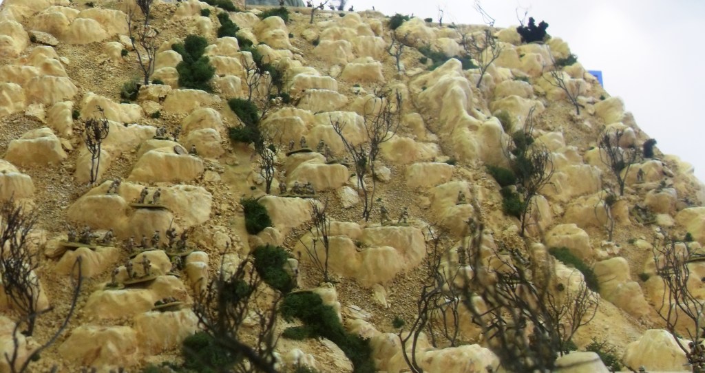 Brits scale the mountainside on the way to Fort Dologorodoc. The stepped terrain to allow movement of figures can be clearly seen in this shot.