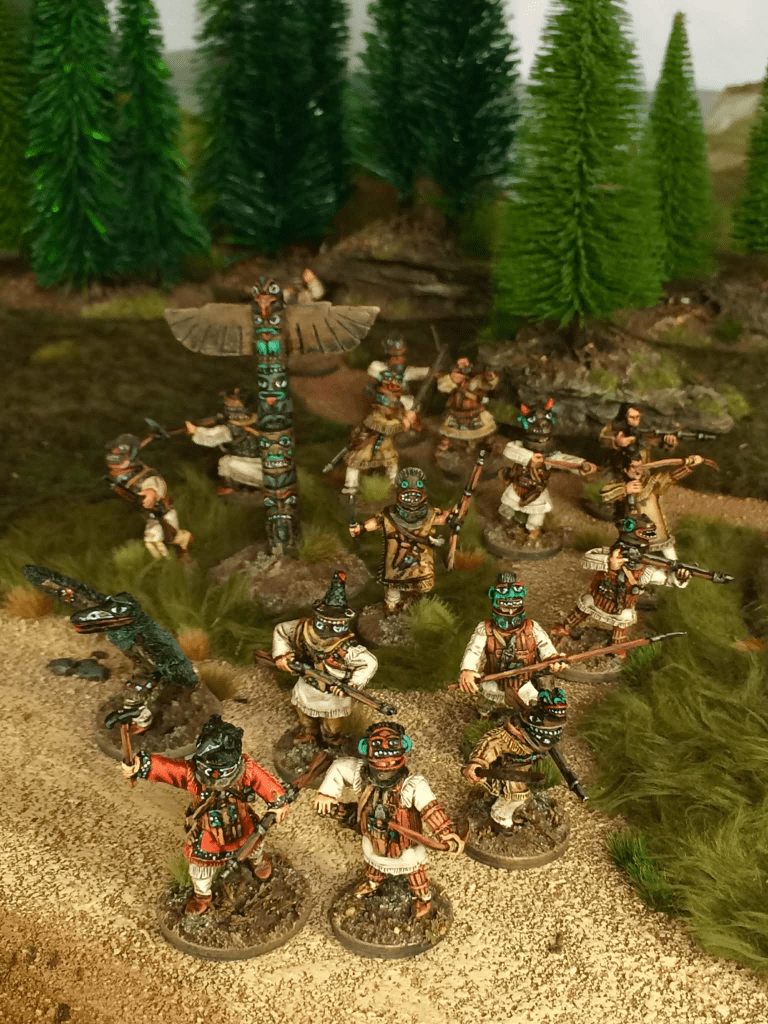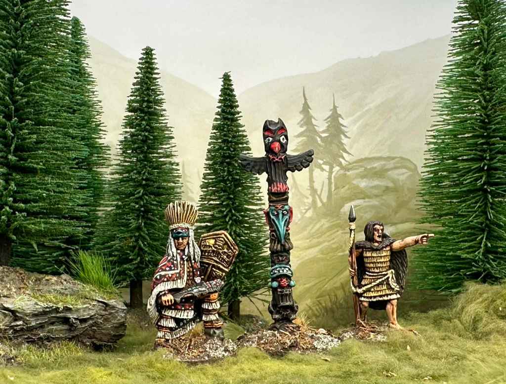 The Tlingit (pronounced ‘Klink-it’) are the core of this project, which kicked off when Varang Miniatures of Russia produced a range of 28mm metal models in 2020. However, Eureka Miniatures of Australia have also entered the fray. They already have 15mm Tlingit and will be releasing a range of twenty-two different 28mm minis in March 2026.
