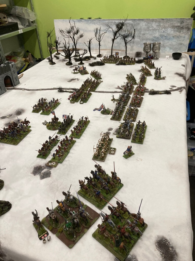 At The Other Partizan 2024, while hanging around the Lonely Mountain pushing hundreds of orcs, we ran into Chris Breese (Winston ap Rees on the socials). Chris’s hobby mojo had taken a down turn recently, so Tom proposed a Wars of the Roses game to help things along. With December being the month of choice, it had to be Wakefield 1460, one of the battles that none of us had played.